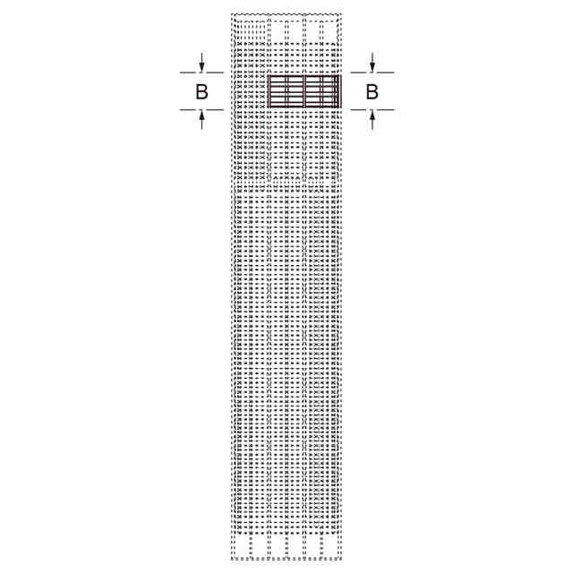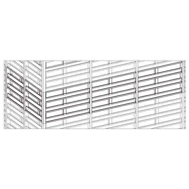 実線で表した部分が部分意匠として意匠登録を受けようとする部分である。一点鎖線は、部分意匠として意匠登録を受けようとする部分とそれ以外の部分の境界を示すもので、模様として意匠を構成しない。「底面図」は重量物のため省略する。「背面図」及び「右側面図」は、意匠登録を受けようとする部分が表れないため省略する。「各部名称及び透明部分を示す参考図1」及び「同2」において、赤色を施した部分、すなわち窓部、及び、パネル部は透明である。なお、パネル部の上側の笠木部は透明ではない。「拡大斜視図」は、部分意匠として意匠登録を受けようとする部分、及び、その周囲を、正面、左側面、及び、平面側から見た斜視図を拡大したものである。「C-C、C´-C´部分における拡大D-D断面図」、「E-E部分における拡大F-F断面図」、及び、「A-A部分における拡大G-G断面図」においては、内部構造を省略して作図してある。