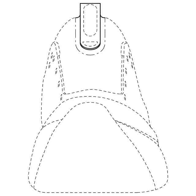 実線で表わした部分が、意匠登録を受けようとする部分である。一点鎖線は、意匠登録を受けようとする部分とその他の部分との境界のみを示す線である。