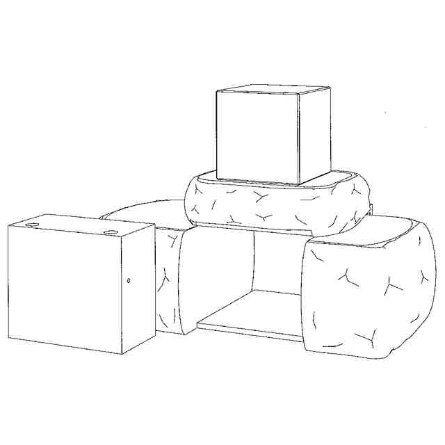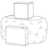 本意匠に係る墓石は、天然石からなり所定の間隔を置いて配置した左右一対の下台と、左右一対の下台間の間に敷設した板石と、左右一対の下台間の上部に架設した上台と、この上台の上に載置した竿石と、前記左右の下台と板石と上台の下面で区画されたカロート(納骨室)となる空間の正面側を閉じるように設けた花台と、当該カロートとなる空間の背面側を閉じるように設けた蓋石とからなる。そして前記竿石は縁部を面取りした立方体形状であり、前記蓋石は側面視が逆向きL字状であって、その水平方向に展開する上部は前記下台の上面に載せ置かれており、前記花台は前記カロートとなる空間を開閉自在として設けられている。「斜視図1」は前記カロートとなる空間の正面側を花台で閉じている状態を示しており、「斜視図2」は花台を横にスライドさせて前記カロートとなる空間の正面側を開いた状態を示している。また前記板石は四角形の板状であって、その後端は前記蓋板の下側に当接している。