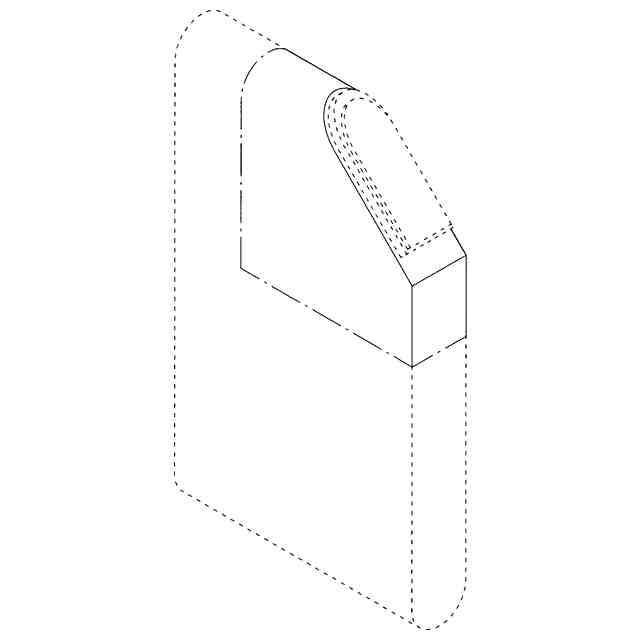 実線であらわした部分が、意匠登録を受けようとする部分である。一点鎖線は意匠登録を受けようとする部分とその他の部分の境界のみを示す線である。斜視図、拡大図及びA-A部拡大斜視図を含めて意匠登録を受けようとする部分を特定している。背面図は正面図と対称にあらわれる。