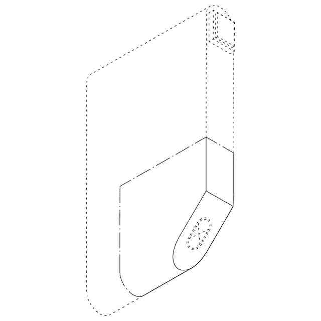 実線であらわした部分が、意匠登録を受けようとする部分である。一点鎖線は意匠登録を受けようとする部分とその他の部分の境界のみを示す線である。斜視図、拡大図及びA-A部拡大斜視図を含めて意匠登録を受けようとする部分を特定している。背面図は正面図と対称にあらわれる。