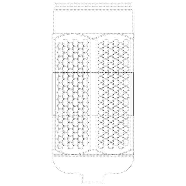 実線で表された部分が意匠登録を受けようとする部分である。一点鎖線は、意匠登録を受けようとする部分の境界のみを示す線である。実線で表された部分における複数の途切れ状細線は立体表面の形状を特定するためのものである。