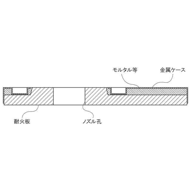 本願意匠に係る物品は、鋼の連続鋳造において、溶鋼の流量制御を行うスライドバルブ装置に使用されるスライドバルブプレートであって、「各部の名称を示す参考断面図」に示すように、ノズル孔を有する耐火板と、耐火板を覆う金属ケースがモルタル等で固定されている。