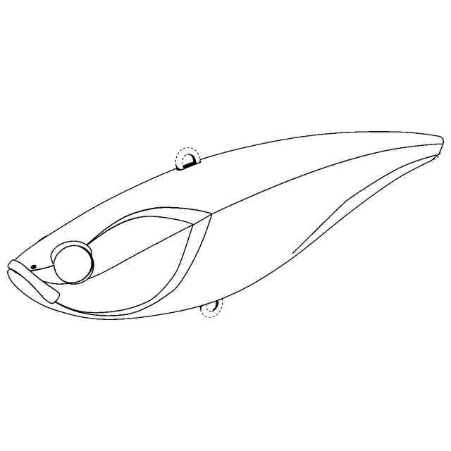 図中に実線で表された部分が意匠登録を受けようとする部分である。右側面図は左側面図と同一につき、右側面図を省略する。陰影を付加して示した参考斜視図1または2は、釣用ルアーの凹凸を明瞭にするために陰影を追加して表わされた図であって、物品の表面に現される濃淡は、表面の色彩を現したものではない。右側面図は左側面図と対称につき、右側面図を省略する。