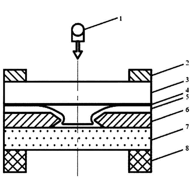 カシメ溶接複合接続技術は、カシメの機械的結合及び溶接の冶金結合の利点を兼ね備え、単純なカシメ継手の強度が低く、導電性が低いという問題、単純な溶接継手の耐疲労性が低いという問題などを一定の程度で解決したため、導電板などの金属板材の接続分野において良好な応用見込みがある。溶接してからカシメを施すと、溶接中に発生した材料性能の変化により、カシメがより困難になる。カシメを施してから溶接すると、カシメプロセスで空間を利用することにより、溶接の位置及び角度が制限され、溶接がより困難になる。このため、産業界は、カシメ溶接の同時実施プロセスによりカシメ溶接複合継手を得ることに向けて努力を進めている。出願番号201510119083.0の中国特許には、極薄板材へのレーザによるカシメ接合・溶接接合の同時実施方法及び装置が開示されている。当該方法において、上層板材と下層板材とを積み重ねて、雌型上にともに置き、雌型には、底部型が設けられており、パルスレーザビームを上層板材又は上層板材の表面に塗布されたエネルギー吸収層に作用させて、爆発プラズマを形成するにつれて、上層板材が下層板材に衝突し、上層板材と下層板材とは、高歪率の塑性フローカップリングが発生し、底部型の拘束下で、上層板材と下層板材は、共同でリベットボタン形状に塑性成形されることによって、機械的相互締結を発生させてカシメ接合される。塑性変形中に、上層板材と下層板材との接触界面には圧縮応力があるので、界面に溶融及び原子拡散が発生し、上層板材と下層板材は、共同で底部型に衝突する時に溶接接合される。しかしながら、当該方法により実現される極薄板材のカシメ溶接継手は、主に2層の板材の共同塑性変形によるものであるため、非常に薄くて厚みに大きな差がない板材の接続のみに好適である。