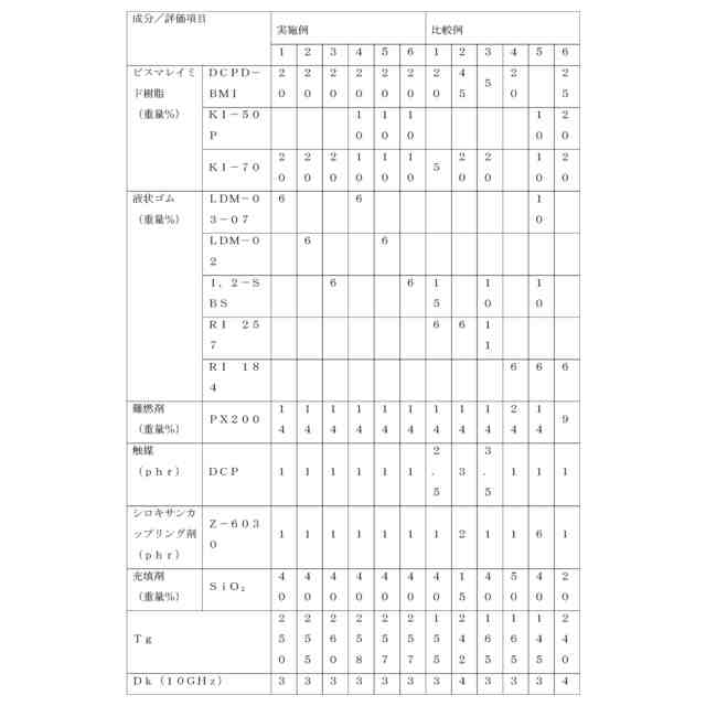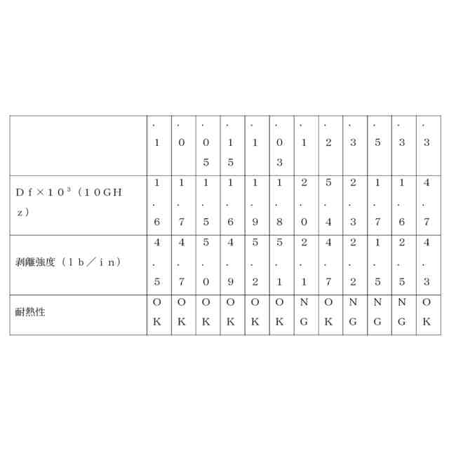 近年、5G通信及びミリ波通信の発展に伴い、携帯電話、基地局、サーバ等に対してより高い周波数(6~77GHz)が応用されてきており、5G高周波数に適するよう、より高い周波数用の基板材料を用いる必要がある。加えて、誘電特性を下げることを目的として銅張基板も開発する必要がある。現在の低誘電配合において、誘電正接を0.0020未満に減らすために特定の比率の液状ゴムを添加することができるが、ガラス転移温度が低い。このため、高ガラス転移温度及び低誘電正接の両方を有する材料といった高周波用プリント基板の特性、並びに優れた電気特性を有する材料を如何にして開発するかが、プリント基板の分野において喫緊の課題のうちの1つである。