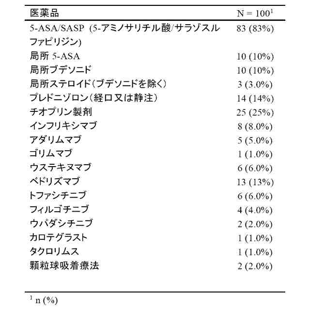 潰瘍性大腸炎(UC)は、大腸粘膜のびまん性炎症が直腸から連続的に分布する大腸炎であり、遺伝的要因及び環境要因が関与する慢性腸炎である。治療目標は、大腸炎の客観的な改善として定義される。治療目標に関する国際ステートメント(Selecting Therapeutic Targets in Inflammatory Bowel Disease:STRIDE-II)では、短期治療目標は臨床症状の改善及び寛解を含み、長期治療目標は、内視鏡的粘膜治癒である(非特許文献1)。