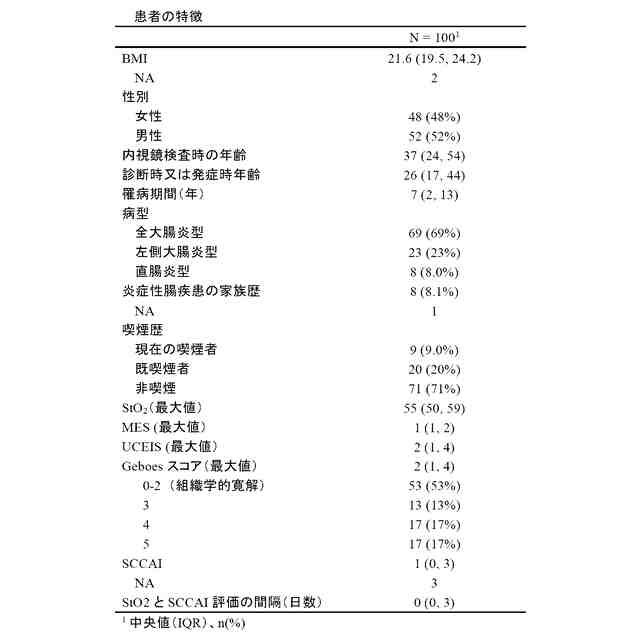 本発明は、潰瘍性大腸炎(UC)の臨床的、内視鏡的及び組織学的疾患活動性の評価のための酸素飽和度イメージング内視鏡の臨床的有用性を評価し、UCの疾患活動性及び症状を評価するための客観的な手段を提供することを目的とする。