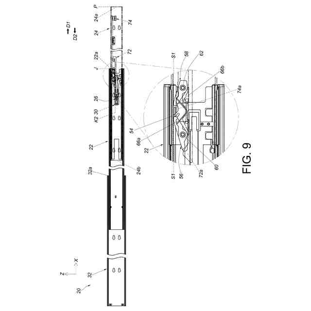 図1は、本発明の一実施形態に係るスライドレールアセンブリを示す図である。