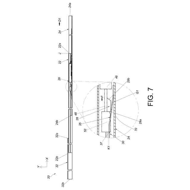 図7は、本発明の実施形態に係る、第1のレールが第3のレールに対して開位置に位置する状態を示す図であり、第2のレールが第1のレールに対して第1の方向に沿ってさらに動かされている。