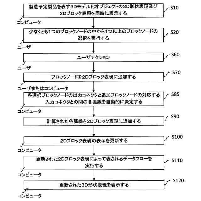 2Dブロック表現は、2Dブロック表現の弧線によって表されるデータフローの実行によって3D形状表現が出力されるように構成される。