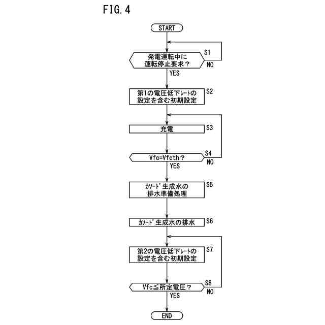 【解決手段】制御装置26は、燃料電池自動車11(燃料電池システム10)の運転停止信号を検知したとき、燃料電池スタック12の発電電圧Vfcを第1の電圧低下レートVdr1で緩やかに低下させて余剰の発電電力を蓄電装置244に充電する。その後、第1の電圧低下レートVdr1より高い第2の電圧低下レートVdr2で発電電圧Vfcを急激に低下させることで、燃料電池スタック12の劣化を抑制する。