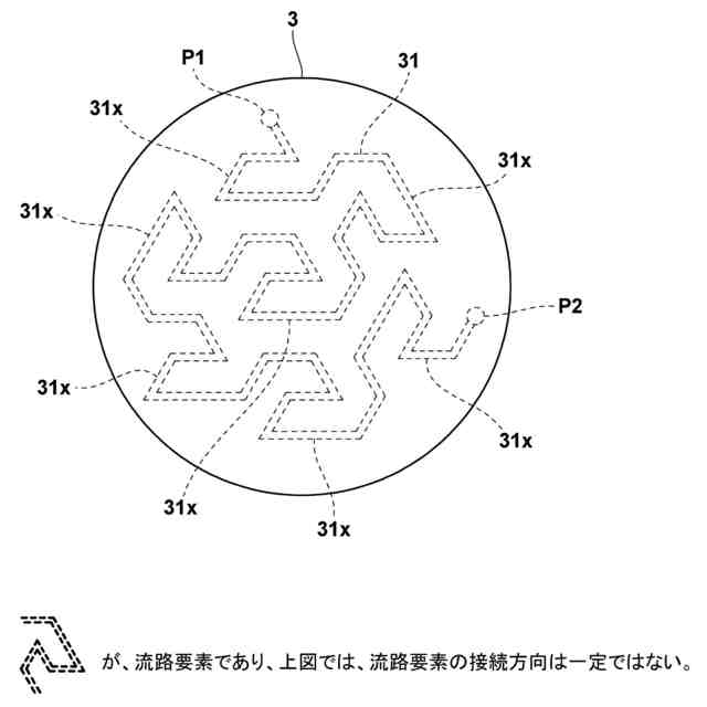 具体的な実施の態様としては、前記内部流路は、前記流路要素が規則的に接続されることにより、蛇行した流路形状を有していることが望ましい。