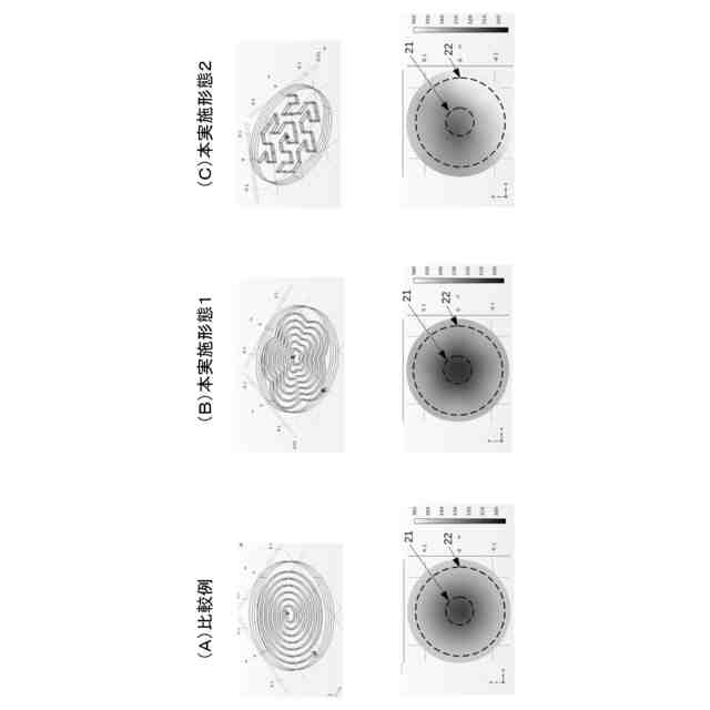 具体的な実施の態様としては、前記内部流路は、前記冷却プレートの冷媒導入ポート及び冷媒導出ポートに連通しており、前記冷媒導入ポートから前記冷媒導出ポートに向かうに連れて前記冷却プレートの中央部からの半径方向の距離が増加する変化及び前記中央部からの半径方向の距離が減少する変化を繰り返していることが望ましい。