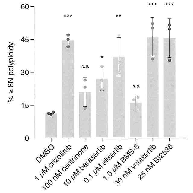 前記オーロラキナーゼ阻害剤が、バラセルチブ、アリセルチブ、トザセルチブ、ZM-447439、MLN8054、ダヌセルチブ、AT9283、JNJ-7706621、TCS7010、MK-5108およびAMG-900からなる群より選択され、