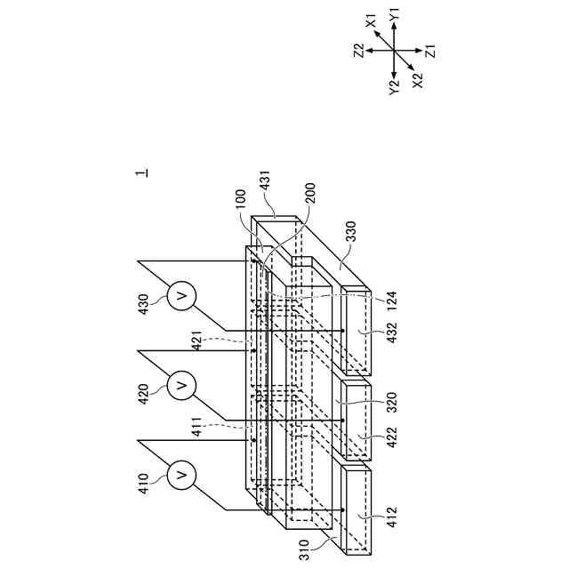 前記複数の圧電素子は、前記高次トポロジカル絶縁体層に、前記交線と直交する方向の成分を含む応力を印加するように配置されており、