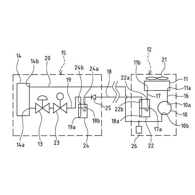 該開閉弁(23)と前記凝縮器(11)との間の配管(18)に設けられ、液冷媒を貯留可能な冷媒貯留手段(24)と、