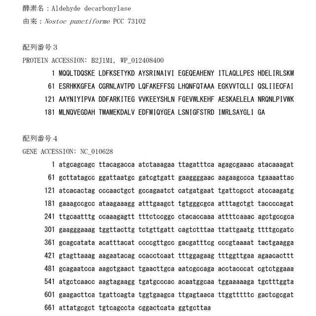これまでに、微生物を用いて所望の物質を生合成する技術が知られており、例えば、シアノバクテリアは光合成に伴い脂肪酸を生合成できることが知られている。脂肪酸生合成において重要な酵素であるアシル-ACPレダクターゼ(AAR;アシル-アシルキャリアタンパク質(アシル-ACP))還元酵素)は、補酵素(主にNADPH)を用いて、アシル-ACPを対応するアルデヒドへ変換する酵素であり、生成されたアルデヒドは、アルデヒド脱ホルミル化オキシゲナーゼ(ADO)による脱ホルム化によって対応するアルカン又はアルケンに変換される。AAR及びADOによる該変換は脂肪酸生合成の最終段階で生じ、AARにより生成されたアルデヒドが、対応するアルカン又はアルケンへとADOによって変換されることから、AARは、最終的に得られる生成物中の脂肪酸誘導体の組成を決定する重要な酵素である。また、公知の組み換え技術を用いてAAR及びADOを大腸菌で共発現させることにより前述のAARによる変換とADOによる変換が生じて、炭化水素を産生できることが知られている。このように、AAR及びADOは炭化水素を簡便に生産できる酵素として有用である。一方、AAR及びADOを用いた炭化水素生産において、アルカンをより効率よく生産することが望ましい。例えば、航空燃料に含まれる炭化水素は、主にアルカン(直鎖アルカン、分岐鎖アルカン、シクロアルカン)であり、オレフィンや芳香族炭化水素の割合は低いため、アルカン生産効率の向上は、得られた炭化水素をそのままバイオ燃料(ドロップインバイオ燃料)として利用する点で有用である。また、アルカン及びアルケンをより効率よく産生することも望ましい。アルケンは水素付加を行うことで比較的容易にアルカンに変換できることが知られているため、アルカン及び/又はアルケンの生産効率向上は、ひいてはアルカン生産効率の向上を容易にもたらすといえる。