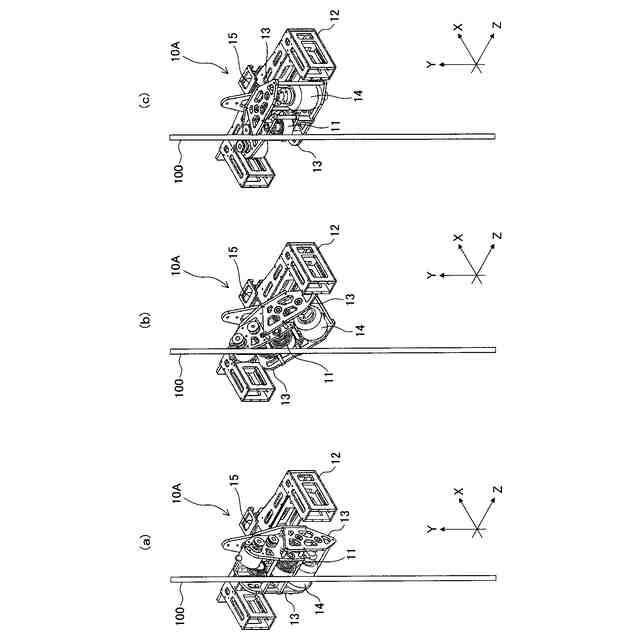 前記経路部材の軸線に対する前記駆動回転体の回転軸の角度を変更する軸角度変更部を備え、