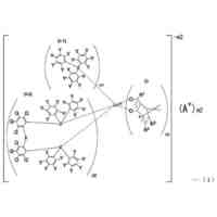 -)を示す。このポリマーは、式(1)で表される構成単位、式(2)で表される構成単位、又はこれらの両方を繰り返し単位の一部又は全部として含む分子鎖を有することができる。式(1)又は(2)で表される構成単位を含む分子鎖は直鎖状、分岐状又は環状であってもよく、架橋構造を形成していてもよい。