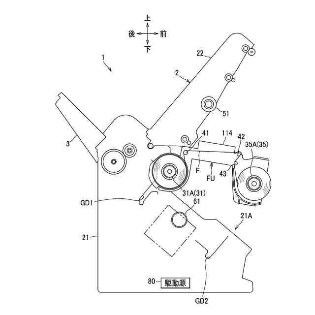前記外側壁は、前記切欠の前記供給リールの回転軸回りの角度α1の範囲において、前記供給リールの軸方向に沿って見て、前記供給ギヤの歯先と重ならないことが望ましい。また、前記外側壁は、前記切欠の前記供給リールの回転軸回りの角度α1の範囲において、前記供給リールの軸方向に沿って見て、前記供給ギヤの歯底と重ならないことが望ましい。