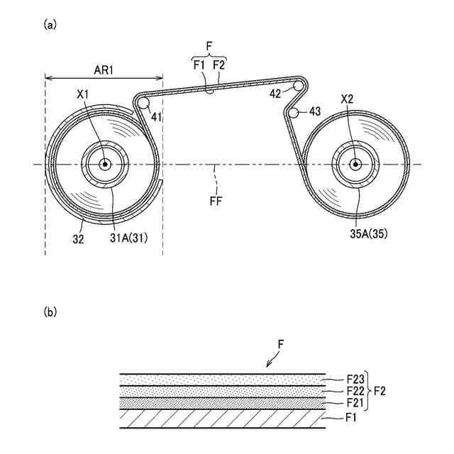 また、前記したフィルムカートリッジと、前記供給リールおよび前記巻取リールを支持するホルダと、前記供給リールから引き出される前記多層フィルムの前記支持層に接触して、前記多層フィルムの進行方向を変更する第1案内軸と、前記第1案内軸で案内された前記多層フィルムの前記支持層に接触して、前記多層フィルムの進行方向を変更する第2案内軸と、を備えるフィルムユニットを開示する。
