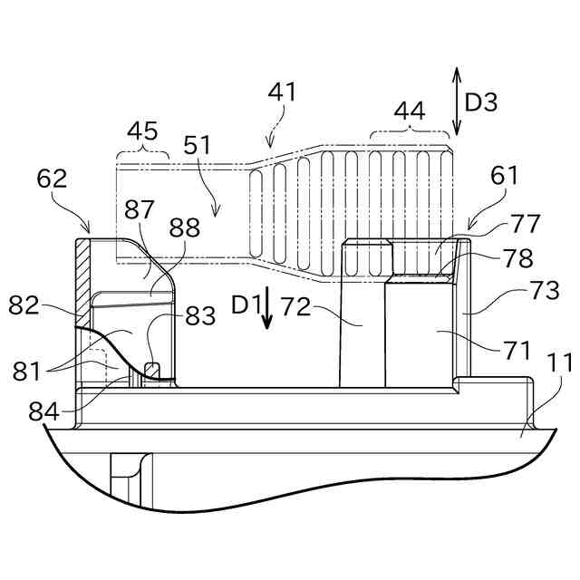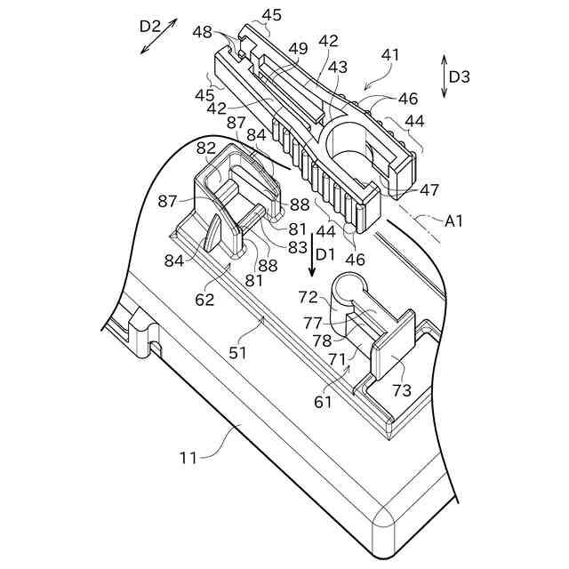 上記特許文献1の構成においては、工具保持部に保持爪が設けられている。従って、工具の着脱時、保持爪が保持穴を通過するために工具保持部を変形させる必要があり、工具保持部の耐久性が低下してしまう。工具保持部が破損した場合、電気部品引抜具が固定できなくなり、筐体ごと交換する必要があり、修理コストが高くなる。また、保持爪を形成しようとすると、金型によっては筐体に貫通孔を開けなければならない場合があり、防水性が損なわれてしまう。筐体に貫通孔を開けずに保持爪を設ける方法として、金型にスライド構造を設けるか、金型で無理抜き成形を行うことも考えられる。しかし、これらの方法においても、金型の構造が複雑になる、又は、離型時の保持爪の変形や破損の懸念が残るという点で改善の余地があった。