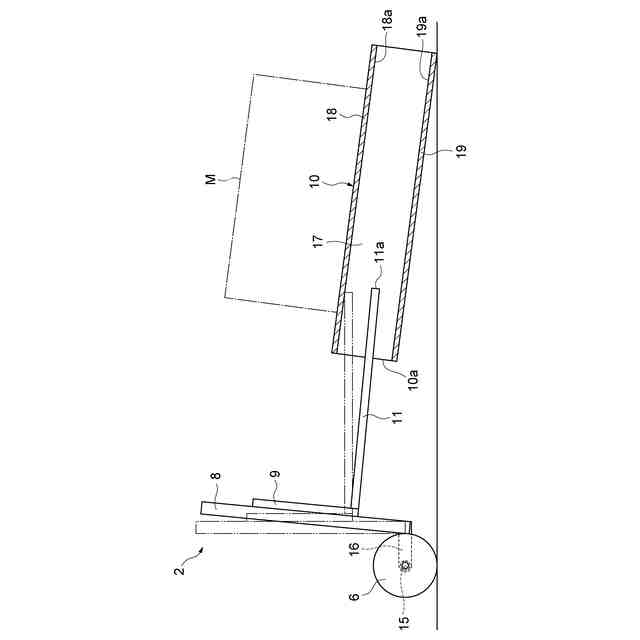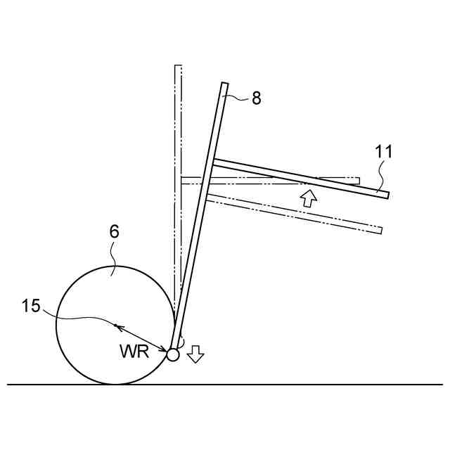(2)上記の(1)において、フォーク動作制御部は、近接検知部によりフォークの先端が上壁部に近接したことが検知されたときは、フォークがマストと一緒に前傾するようにティルトシリンダを制御すると共に、マストの前傾によりマストが下降する距離よりも長い距離だけフォークが上昇するようにリフトシリンダを制御し、近接検知部によりフォークの先端が下壁部に近接したことが検知されたときは、フォークがマストと一緒に後傾するようにティルトシリンダを制御すると共に、マストの後傾によりマストが上昇する距離よりも長い距離だけフォークが下降するようにリフトシリンダを制御してもよい。