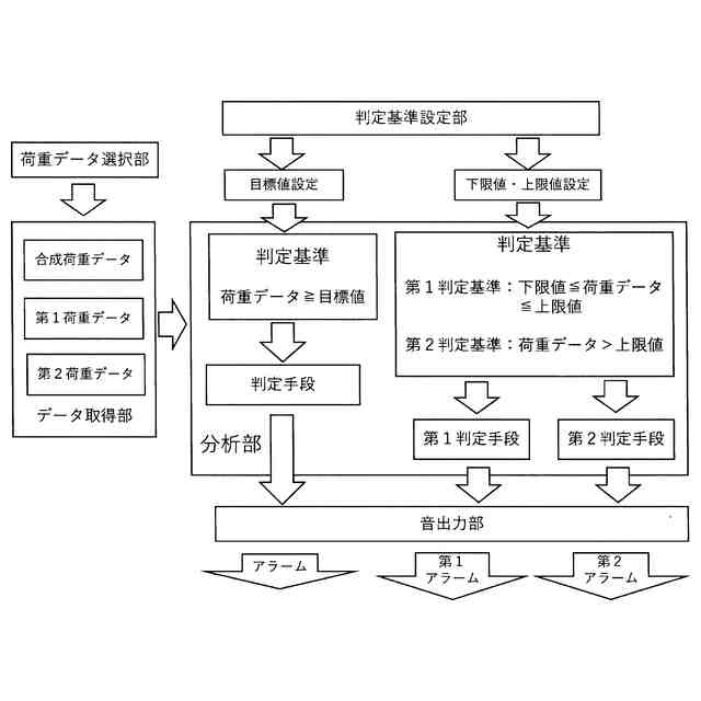 合成荷重データが合成荷重判定基準を満たしている場合にアラームを生成する音出力部と、