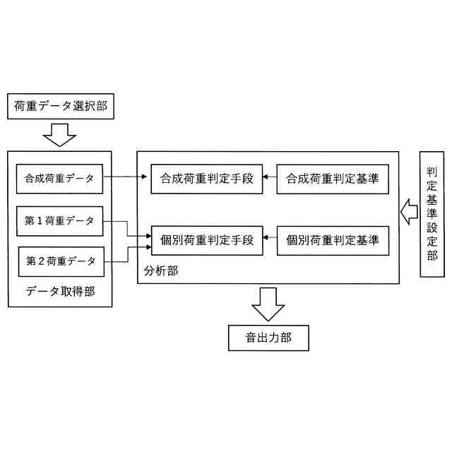 合成荷重データが合成荷重判定基準を満たしているか判定する合成荷重判定手段を備えた分析部と、