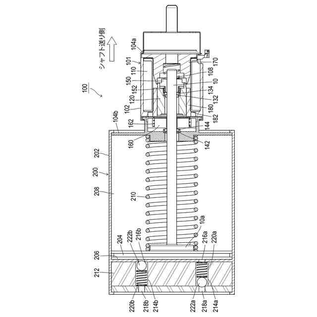 図7に後続してシャフトが初期位置に戻った状態の蓄圧装置の全体構成図である。