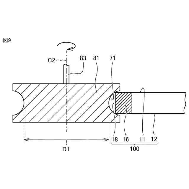 図9は、円弧状部に対して面取り加工を行う工程を示す部分断面模式図である。