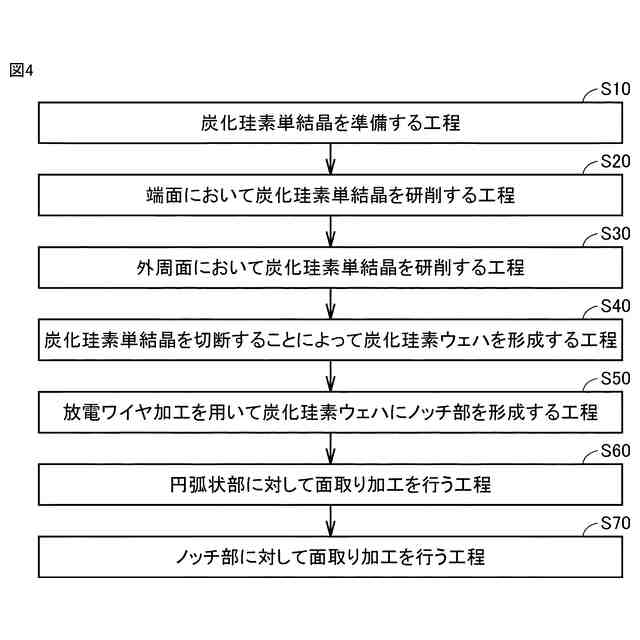 特許文献1に記載の半導体ウェハの製造方法によれば、半導体ウェハにノッチを形成する際に、砥石と半導体ウェハとが接触する。このため、炭化珪素によって構成されている半導体ウェハにノッチを形成する場合、炭化珪素が硬い材料であることに起因して、半導体ウェハにクラックが発生することがある。