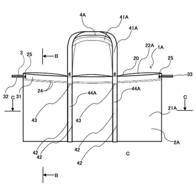 前記持ち手は、輪状に形成されており、前記袋部の底部において屈曲されることで、前記持ち手の前記一部分が前記前面部に配置され、前記持ち手の前記他の部分が前記背面部における前記一部分に対応する位置に配置される、