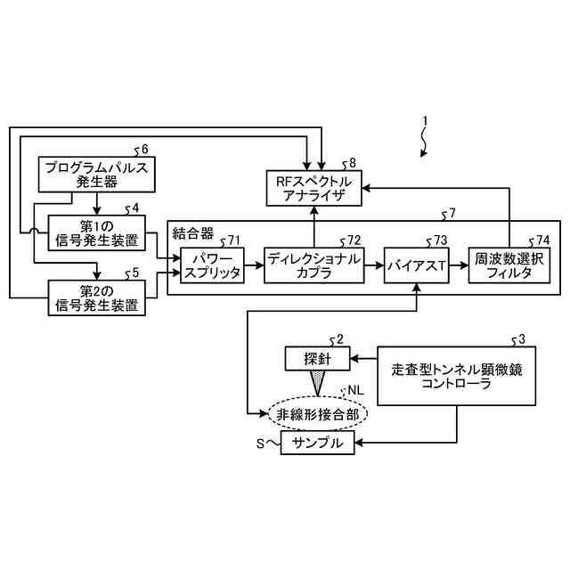 従来、電子スピン検知を目的として、スピン偏極走査型トンネル電子顕微鏡(SP-STM:Spin Polarized-Scanning Tunneling Microscope)や走査型近接場光顕微鏡(SNOM:Scanning Near field Optical Microscopy)などが開発されてきている。さらに、特許文献1には、互いに異なる周波数を有する2つの高周波信号を導入することにより、測定対象と走査型トンネル顕微鏡の探針との間に流れるトンネル電流に重畳されるヘテロダインビート信号を検出して、測定対象の電子状態等の状態を原子レベルの空間分解能で測定する技術が開示されている。