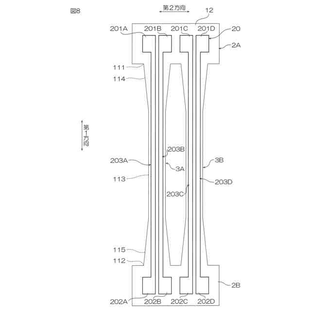 第1方向に延び、互いに間隔を隔てて配置される複数の配線部と、