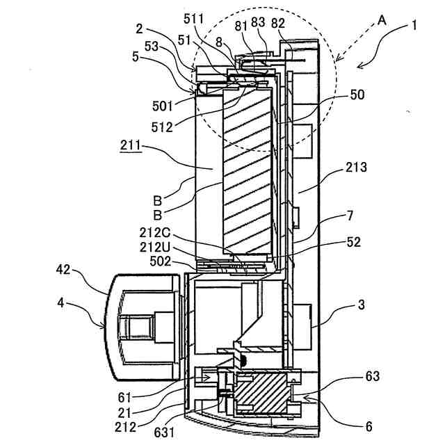 図6は、図1~図3の電気錠の背面カバーを本体ケースから外した状態を示す背面図である。