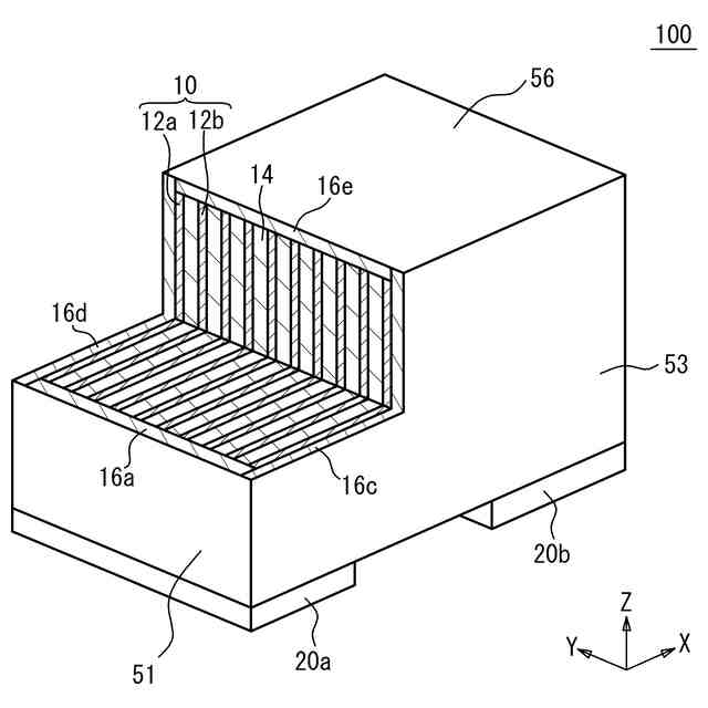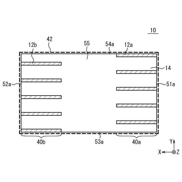 前記第1端部および前記第2端部からそれぞれ露出する前記第1内部電極および前記第2内部電極に、それぞれ接触する一対の外部電極と、