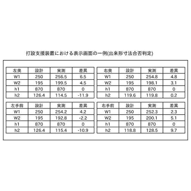 前記設計支援装置で作成した補正後設計データを取得する補正後設計データ取得部と、前記第1のプレキャスト床版に構築された壁高欄の位置及び外形寸法を実測した実測データを取得する実測データ取得部と、前記実測データと当該第1のプレキャスト床版の前記補正後設計データとを対比して合否判定を行う第2の合否判定部とを有する打設支援装置を備えた