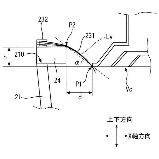 第3の観点は、第2の観点に加えて、次の特徴をさらに有する。ブラシが制気口の外周部と接触する点を接触点とし、この接触点と支持板の上面内端を通る仮想線が前記制気口の下面となす角度は、25度~43度の範囲内である。
