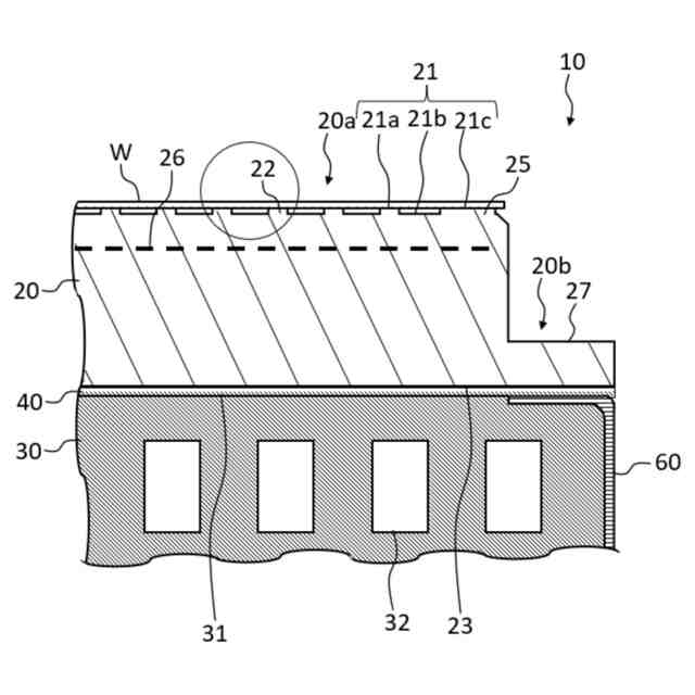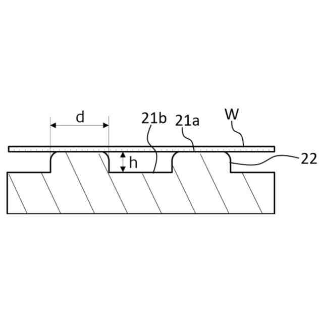 基板支持面となる最先端面の表面粗さが、算術平均粗さRaで0.01μm以下であると、基板Wを静電チャックに静電吸着したときに、基板Wから基板支持面に局所的に大きな力が加わり、凸部が破損することを抑制することができる。また、破損により凸部と基板Wとの接触状態が変化し基板Wと静電チャックとの間の熱伝導性が変化することを抑制することができる。