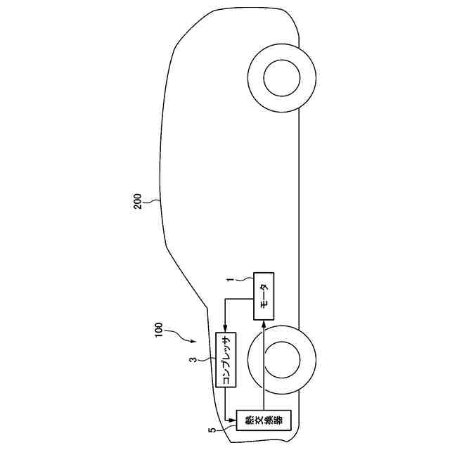 ロータ及びステータと、前記ロータに連結された回転軸と、前記コンプレッサにより圧縮された前記冷媒を用いて潤滑を行い、前記回転軸を支持する滑り軸受と、を備えるモータであって、当該モータ内を通過する前記冷媒が、前記滑り軸受から流出した後に膨張されて、前記ロータ又は前記ステータの冷却に用いられるように構成された前記モータと、