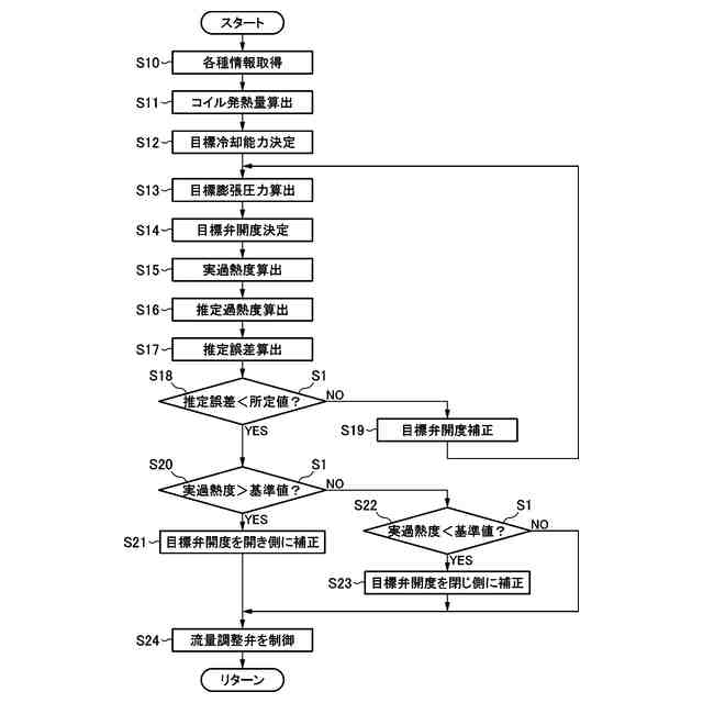 前記第2圧力センサにより検出された圧力と前記第2温度センサにより検出された温度とに基づき算出された前記過熱度を第1過熱度とすると、当該第1過熱度とは別に、前記コイルの発熱量及び前記目標冷却能力に基づき推定される第2過熱度を算出し、