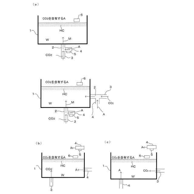 このような場合、二酸化炭素を含有する上側の空気との接触状態が実現するが、その場合には、空気が含有する炭酸ガスの濃度によって、水中の二酸化炭素における還元効率が左右される。