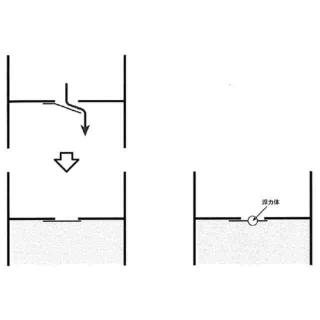 また、特許文献3には、「次に、雨水分離装置100の動作について、図3を参照して説明する。」、「雨水分離装置100へ雨水の流入がなく、初期雨水タンク130が空の場合、図3の(a)に示すように、フロート160は、フロート本体160aがタンク部130aの底面に接しているため、止水弁は開いた状態にある。」、「雨が降り出すと、雨水取入口110aから黒矢印で示すように雨水が流入し、排水管110を流下した雨水の一部が、雨水取込み部130bから初期雨水タンク130に貯まり始め、それ以外の雨水は、初期雨水タンク130の外周壁と排水管110の内周壁との間の隙間を通って雨水排出口110bから排出される。雨水が初期雨水タンク130に貯まり、初期雨水タンク130内の水位が上昇すると、図3の(b)に示すように、水位の上昇に伴ってフロート160とともに弁体150が上昇する。」、「初期雨水タンク130に貯まった雨水が、初期雨水貯水量に達していない場合には、図3の(b)に示すように、弁体150が弁座140まで上昇しないため、弁体150が弁座140に当接せず止水弁は閉鎖されない。このため、雨水は、取水管120に導入されることなく、排水管110を流下する。」、「降雨が続き、初期雨水タンク130に貯まった雨水の量が初期雨水貯水量に達すると、図3の(c)に示すように、弁体150が弁座140へ当接する。弁体150が弁座140に当接することで止水弁は閉鎖される。止水弁が閉鎖されることにより、排水管110を流下する雨水は、弁座140よりも下方に流下することができずに取水管120へ導入される。このため、取水管120に接続された雨水タンク(図示せず)には、初期雨水を含まないゴミ等の少ない雨水が導入される。」(段落[0025]~[0029])と記載されている。