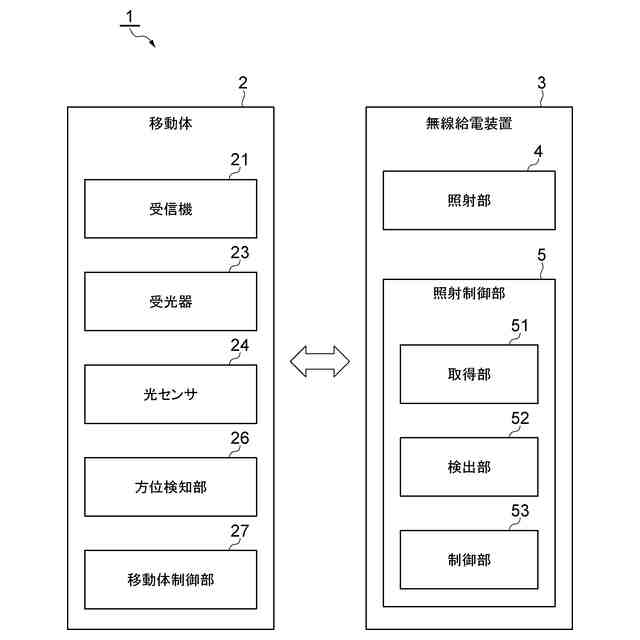特許文献1に記載の無線電力伝送方式では、光源からの光ビームが移動体の受光素子にどのくらいの範囲で当たっているのかを検知し、位置情報を光ビームの送出側に送信し、光ビームの照射方向及び光ビームのスポットサイズを制御している。しかし、光源からの光ビームが移動体の光センサに当たっていない場合には、光ビームの送出側では移動体の位置情報を確認することができない可能性がある。