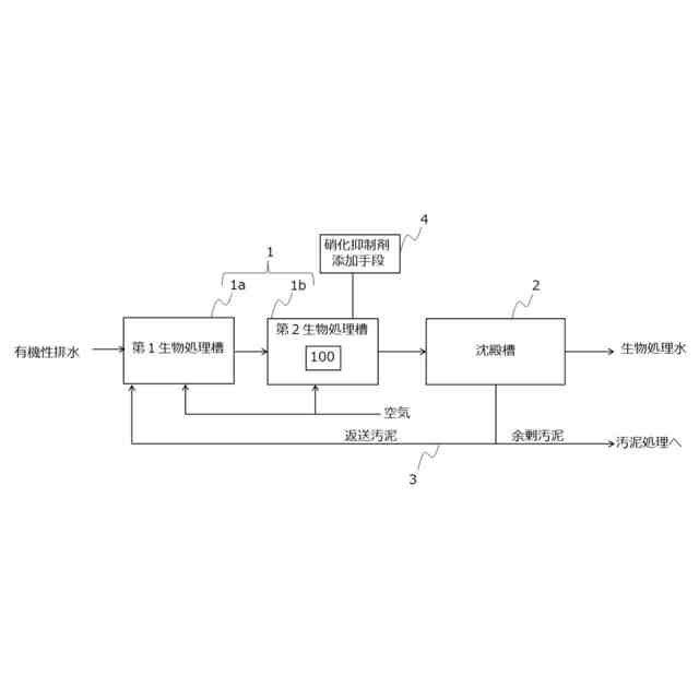 有機性排水の窒素除去を目的にした例えば硝化脱窒素処理工程を含まない有機性排水の生物処理においては、有機性排水中にBODと一緒にアンモニア性窒素や有機性窒素が含まれる際に生物処理槽のBOD汚泥負荷が低くなると硝化が起きることがある。この硝化により、有機性排水のアンモニア性窒素や有機性窒素から硝酸イオン(以下、「硝酸性窒素」ともいう)と亜硝酸イオン(以下、「亜硝酸性窒素」ともいう)が生成する。
