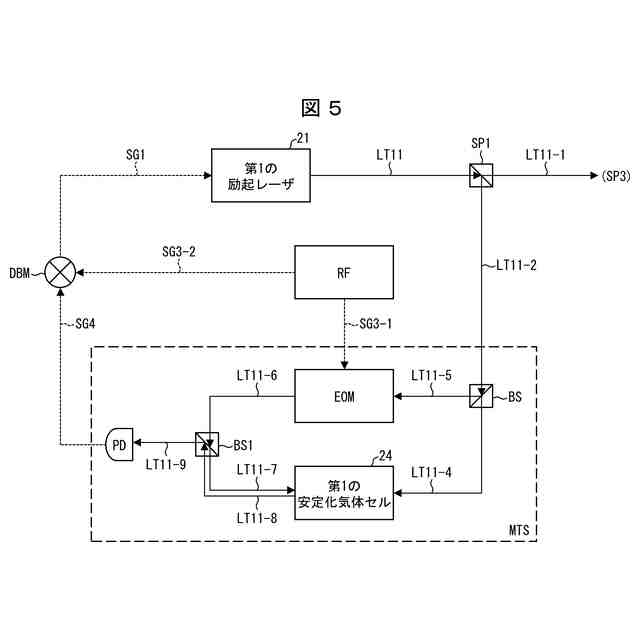 前記第3の周波数安定化気体セルに封入される気体はセシウムであり、