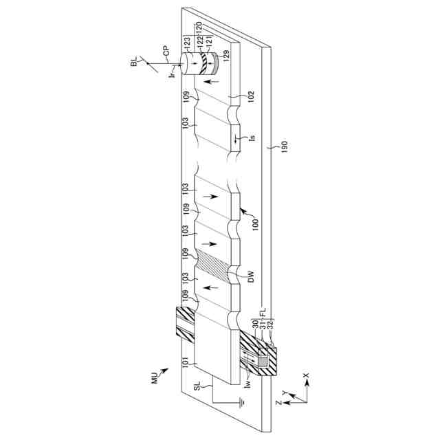 磁性体内に電流を流すことによる磁性体内の磁壁の移動によってメモリデバイスとしての機能を実現する磁気メモリが、知られている。