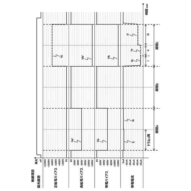 前記第一期間と前記第二期間とは、前記像担持体の表面部分のうち暗部電位にある表面部分が前記帯電部材を通過する期間であり、